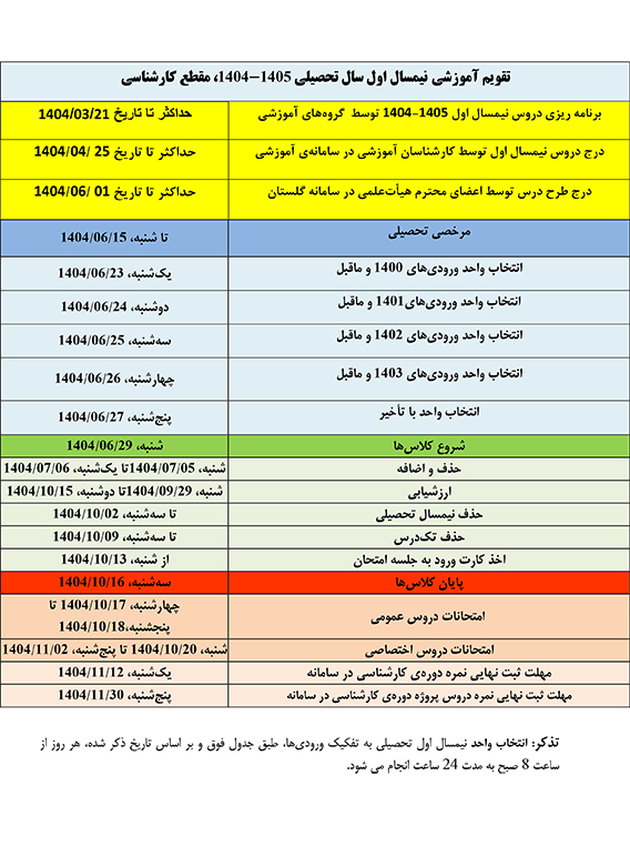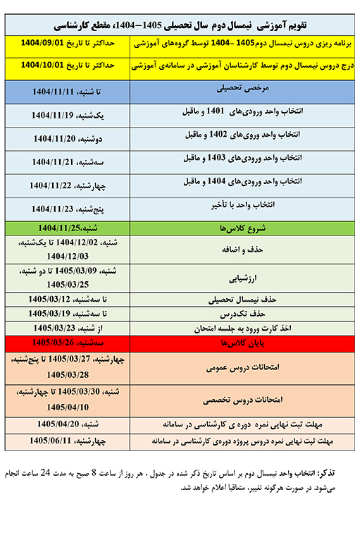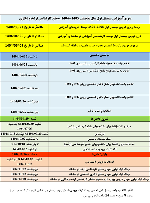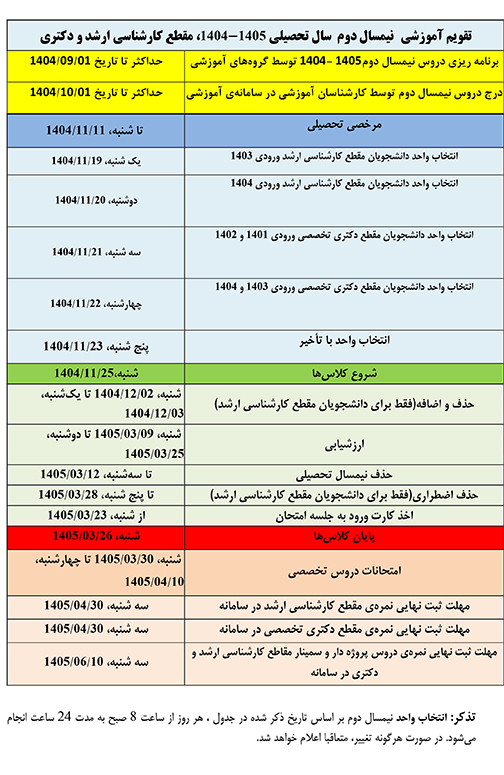 اصلاحیهی تقویم دانشگاهی نیمسالهای اول و دوم سال تحصیلی 1404 - 1405 دانشجویان مقاطع کارشناسی، کارشناسی ارشد و دکتری دانشگاه مازندران