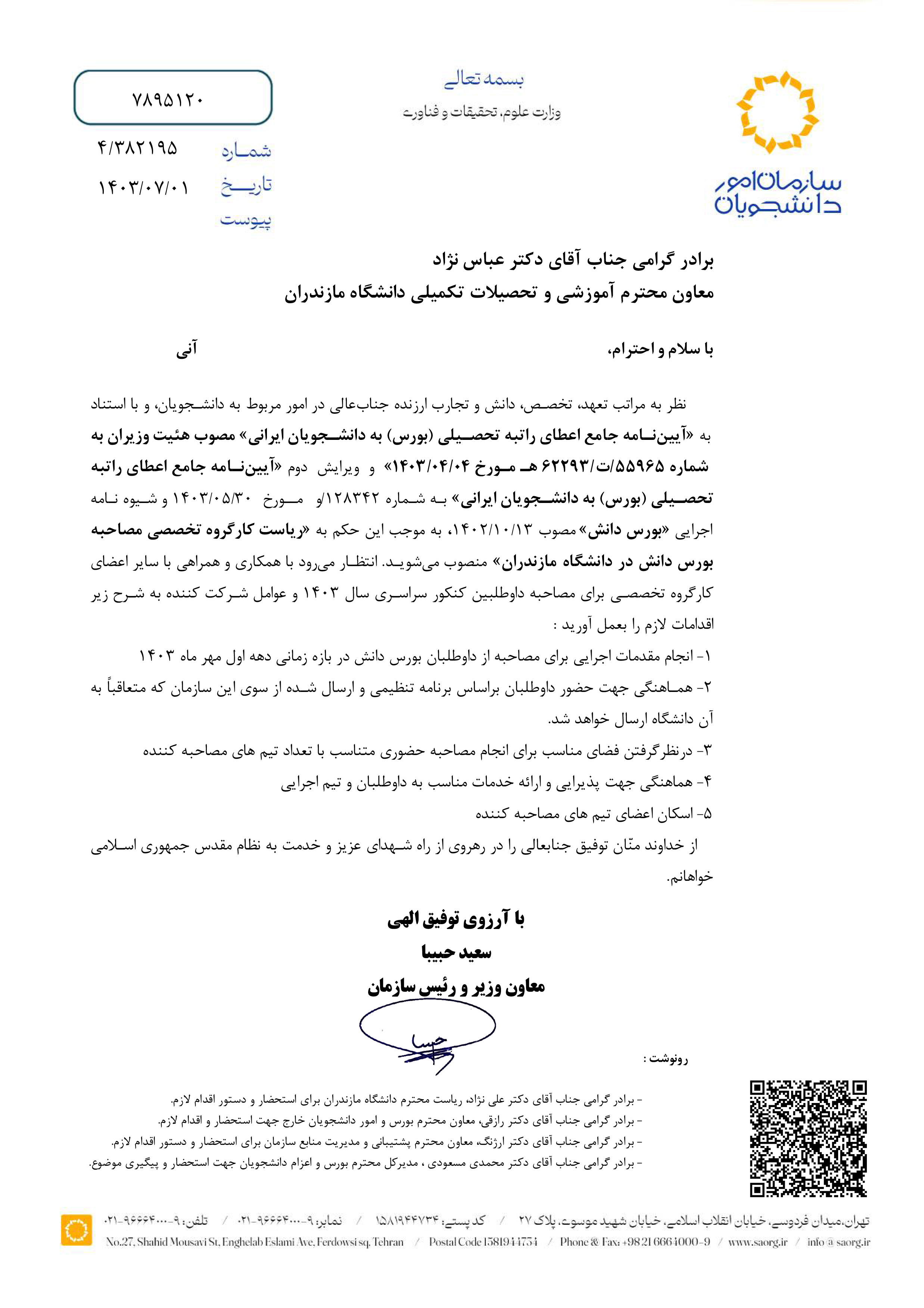 رییس کارگروه تخصصی مصاحبه بورس دانش در دانشگاه مازندران منصوب شد