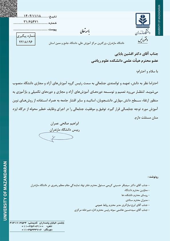 رییس گروه آموزشهای آزاد و مجازی دانشگاه منصوب شد - دانشگاه مازندران